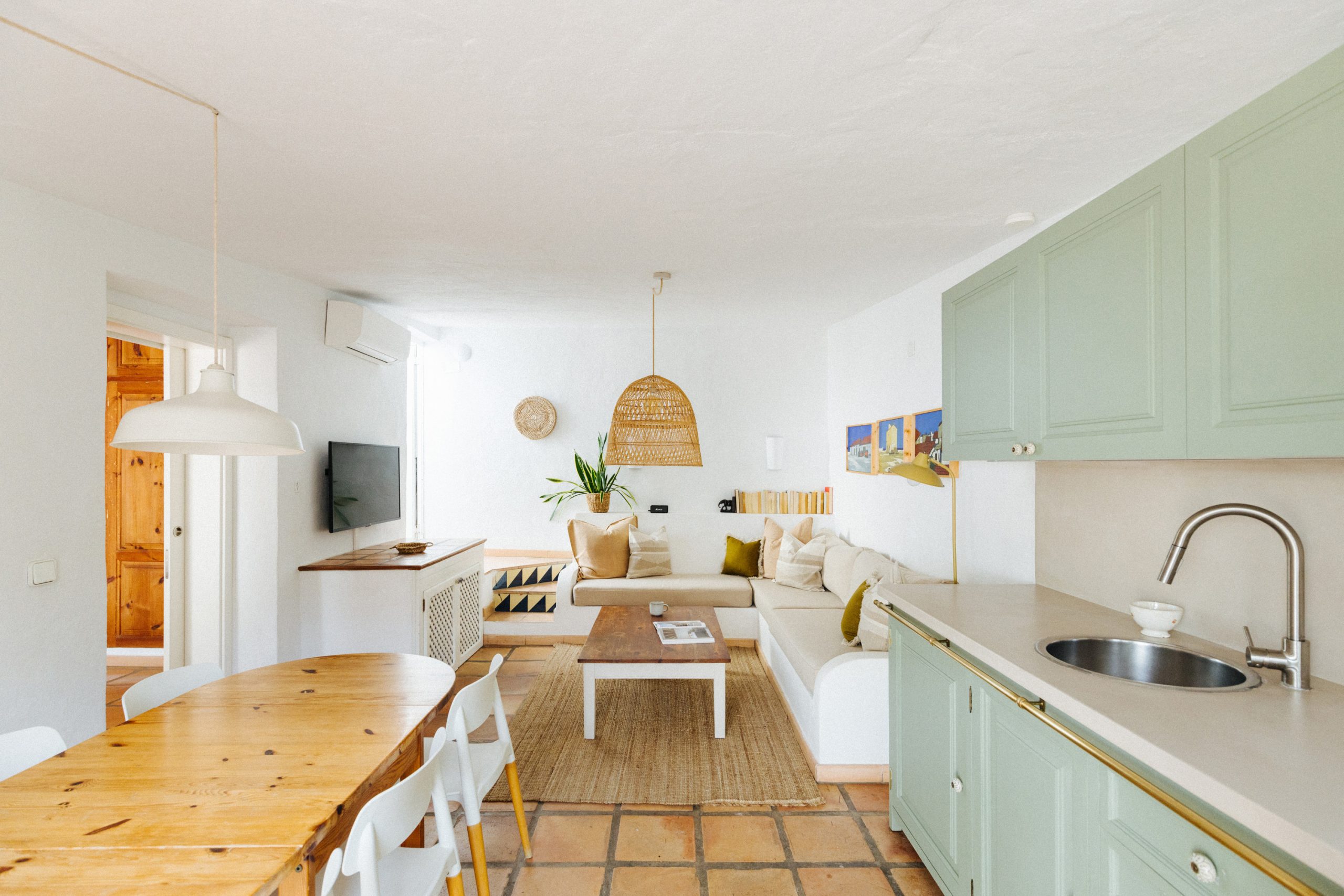 A 75 sq meter cottage that sleeps up to 5 people. The house has two spacious and beautifully styled double bedrooms, one of them with lovely garden/pool views and ensuite and another bedroom with access to a private terrace. The cottage also has a cozy single bedroom overlooking the private outdoor space and a bright bathroom with a large walk in shower. The open plan living interior spaces are modern, light-filled and inviting. From the galley kitchen to the large living and dinning area with comfortable sofas and flat screen TV. The kitchen and dinning open up to a beautiful private patio with a large outdoor eating are and BBQ making it a perfect blend of indoor and outdoor living.