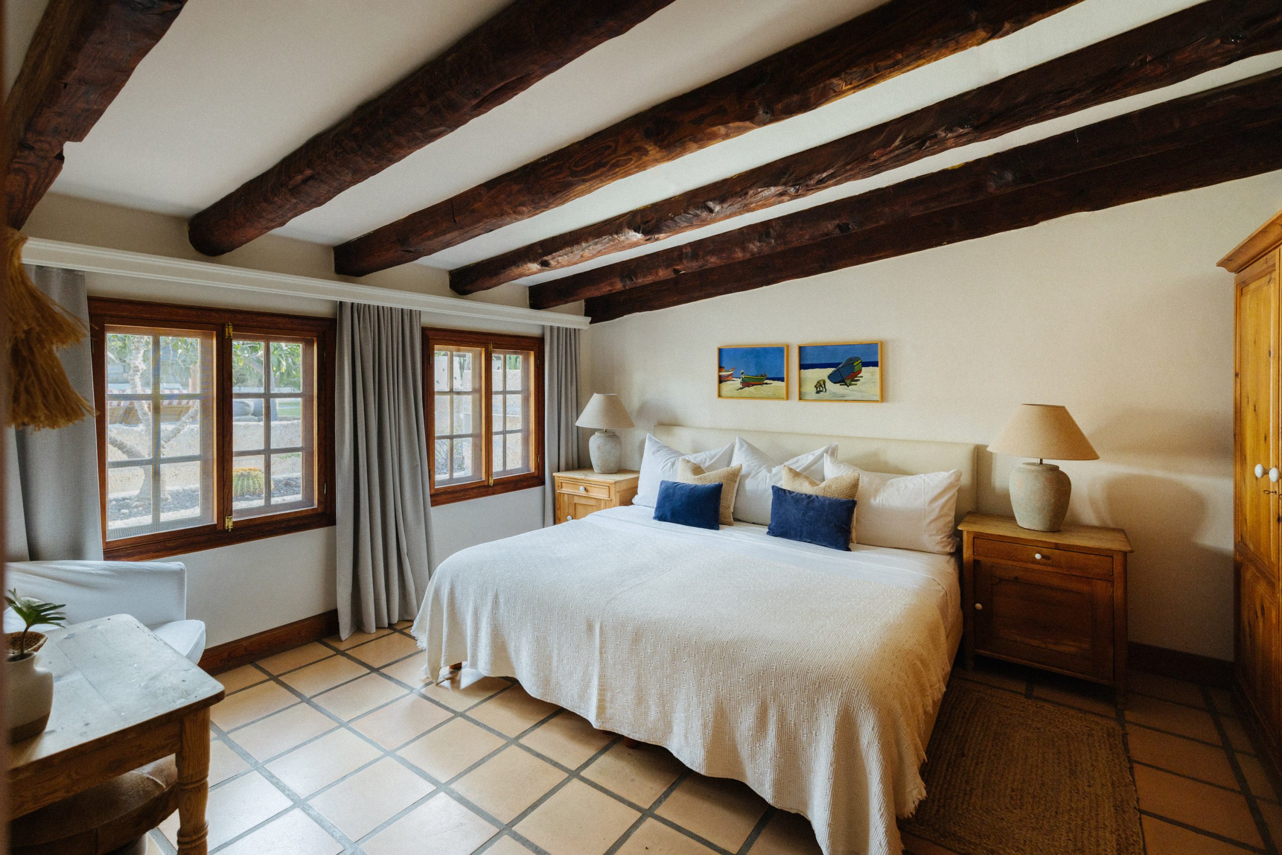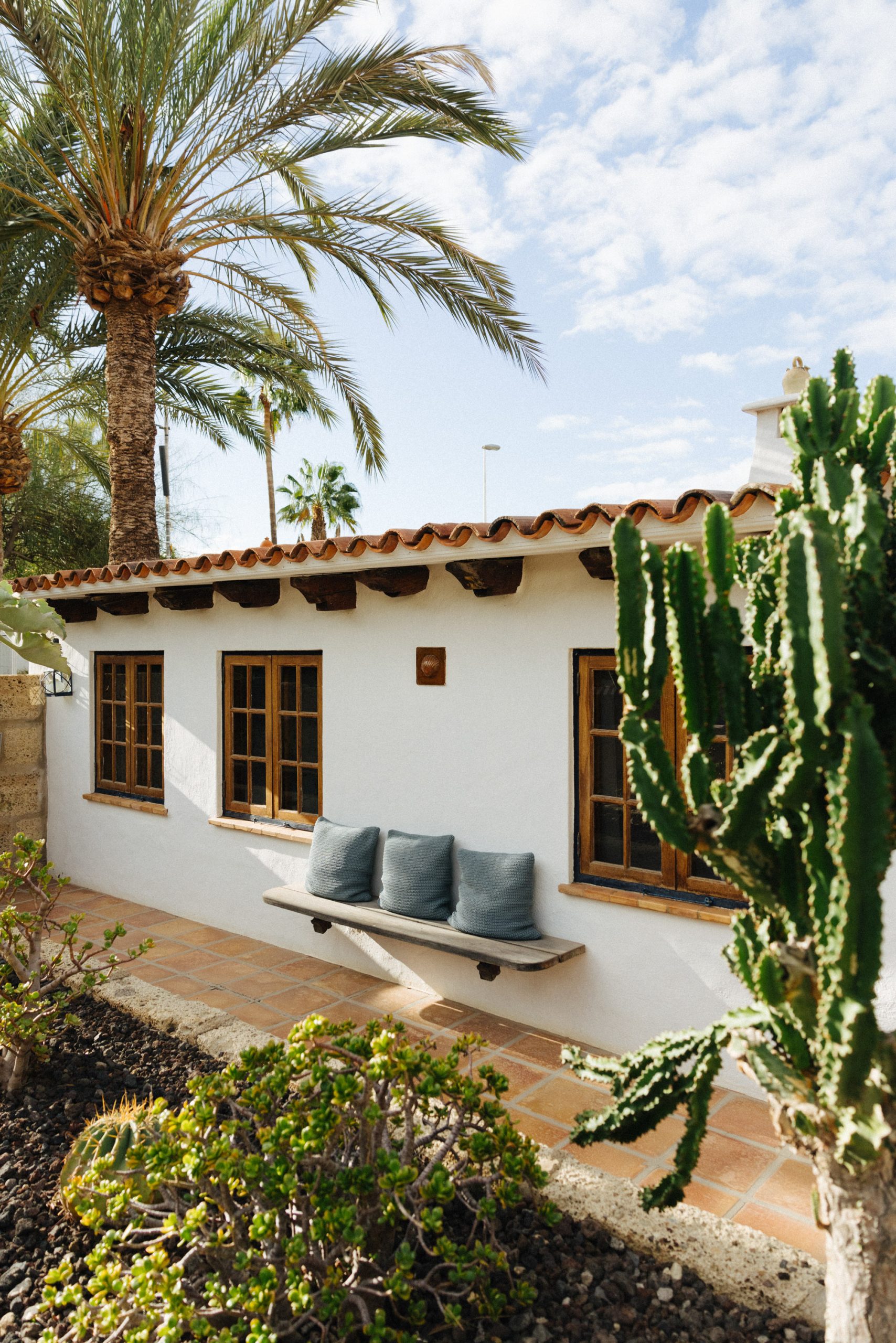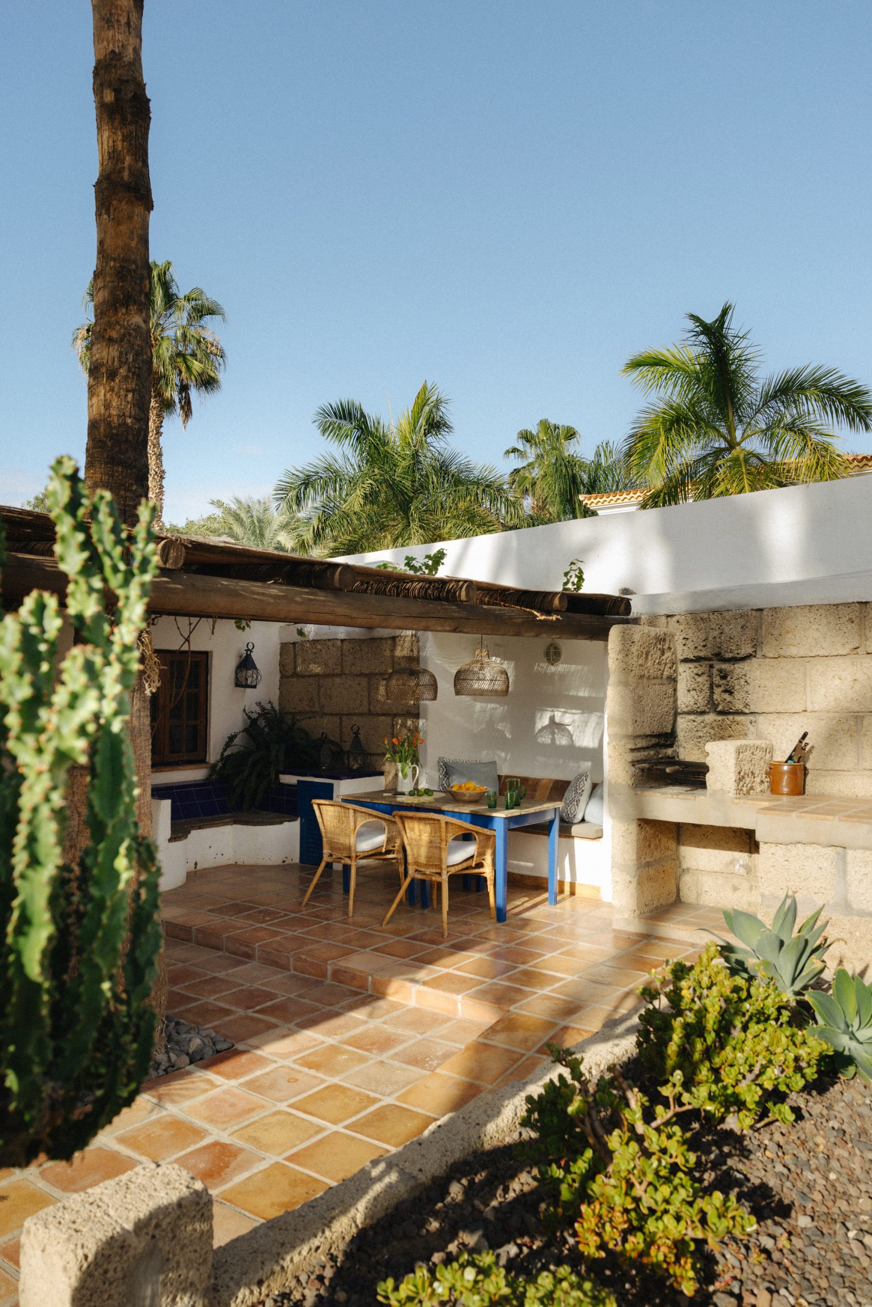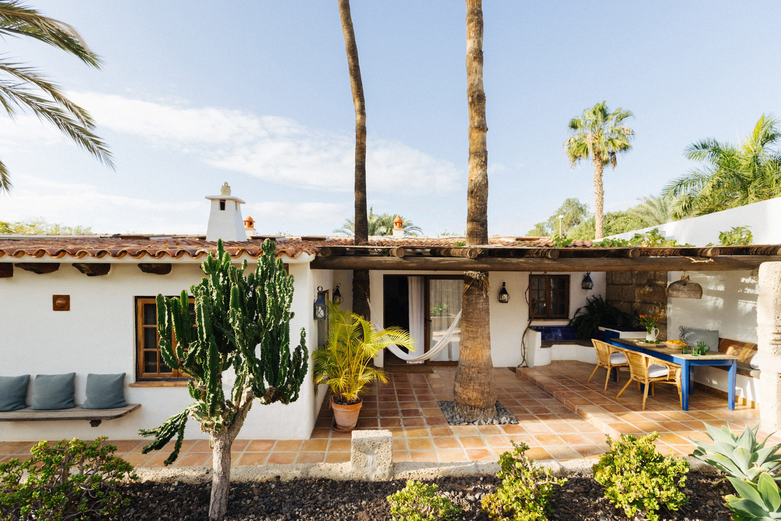 A cozy 75 sq meter cottage that sleeps up to 5 people. Casa Roja has two beautifully styled double bedrooms overlooking the garden/pool area, and a very large bathroom with beautiful natural light and a walk in shower. The welcoming living and dinning area with comfortable sofas and flat screen TV are the perfect place to relax and unwind. The cottage also has a cozy fully equipped kitchen and a shaded outdoor eating area and BBQ.